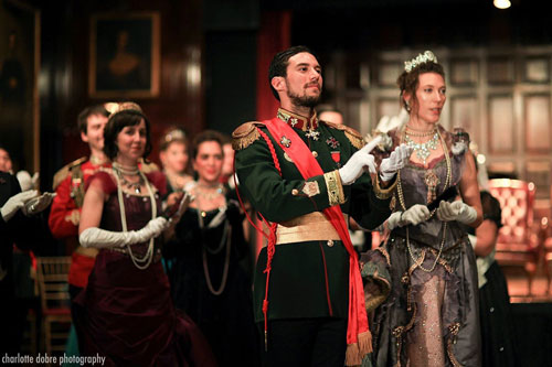 A collection of historic characters Waltzed and Grand Marched through The Players ballroom performing a procession of court bows with agrand promenade of Royal and Imperialintroductions. The characters in the Period Style Salon ranged from Royal and Imperial Majesties to the artist class, with historic legacies ranging from Nicholas Romanov to Oscar Wilde.