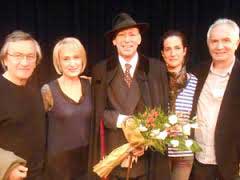 after performance at Chamber Theatre 55 in MESS International Theatre Festival - with renowned Bosnian painter Safet Zec, Mirjana Jovicic - translator of "LUV", Zana Marjanovic - acclaimed actress of Angelina Jolie's film "In the Land of Blood and Honey" and "LUV", and Dragan Jovicic - Artistic Director of Chamber Theatre 55, Sarajevo